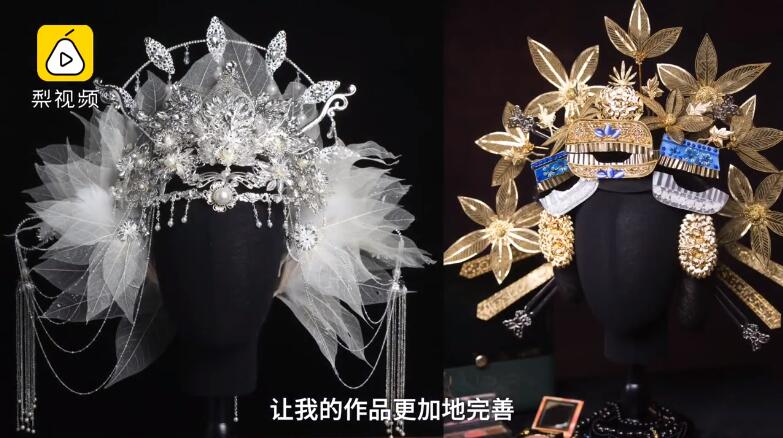 每次看古装剧,总是被演员所戴的华丽头饰所惊艷,而这位女生竟可以用简单的材料做出同款。如《扶摇皇后》里杨幂的发冠;《如懿传》中周迅同款钿子、耳环和护甲;《新白娘子传奇》里白素贞大婚发饰等等。