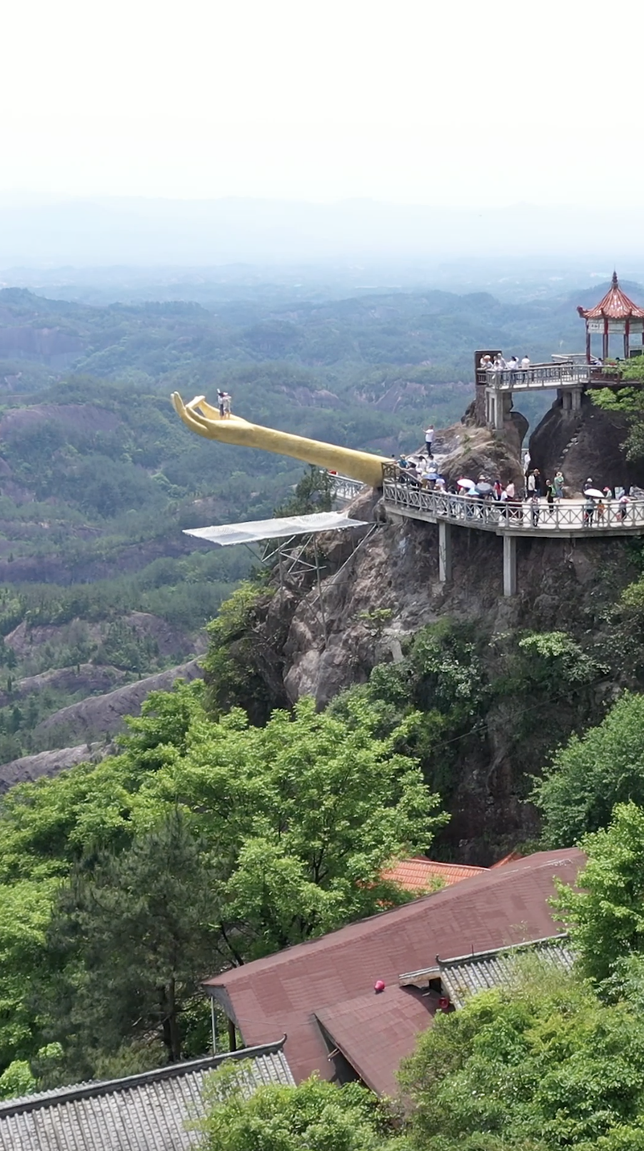 据悉,佛手位于石牛寨景区石佛寺景点附近,游客乘石佛山观光索道可直达。该景点建造在320米高的悬崖绝壁之上,整体呈金黄色,手臂伸出悬崖近20米,游客沿佛手台阶拾级而上,可360°俯瞰石牛寨的丹霞美景;逢云雾天气,游客立于佛手心,如行走在云端。