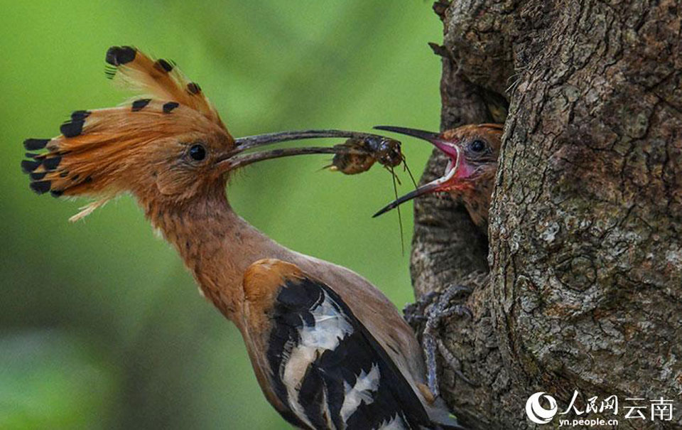 戴胜是我国“三有”保护动物,虽然好看却很脏臭,又因其叫声类似“咕咕”,被人称为“臭姑姑”。近日,自然生态摄影师在云南盈江国家湿地公园拍摄到几窝戴胜育雏的精美画面。几窝戴胜的巢就在湿地公园步道旁,生性活跃的它们不惧怕来往的游客,频繁喂食雏鸟,过程超治愈。相信在成鸟无微不至地照顾下,幼鸟们很快将离巢,和爸爸妈妈一起快乐生活。