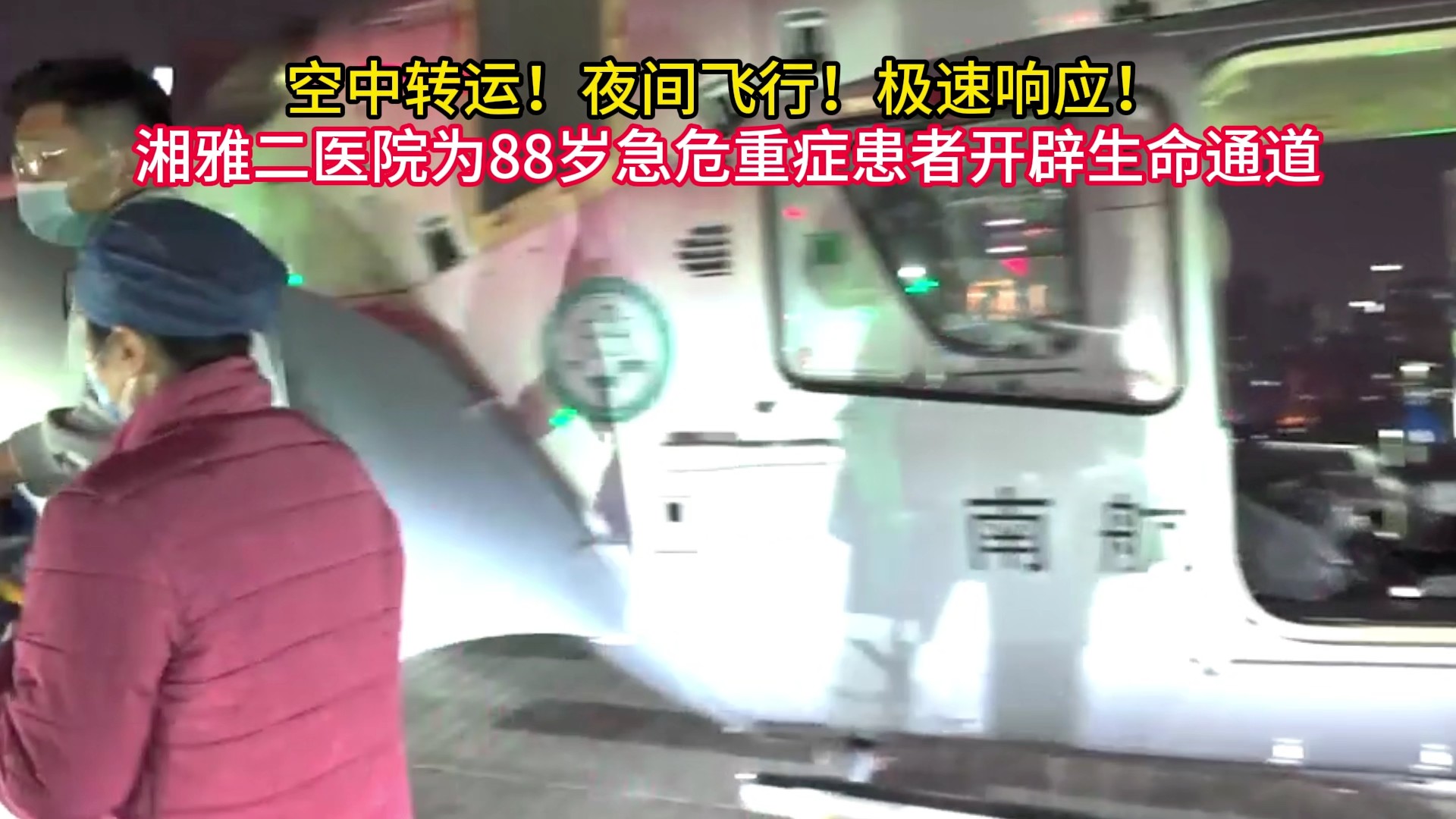 红网时刻新闻1月16日讯(记者 戴丹 通讯员 张旭 彭雄俊)往返1050公里!夜间航空救援!1月14日下午,通过航空转运,中南大学湘雅二医院医护团队成功将一名88岁高龄的主动脉夹层患者从江华瑶族自治县人民医院转送至该院。此次转运首次解锁湖南省医疗夜航能力,以全国罕见的夜间跨区域航空转运实践,为急危重症患者开辟24小时生命通道,创造了高龄危症“空中转运”“夜间飞行”“极速响应”三重突破的救治范本。