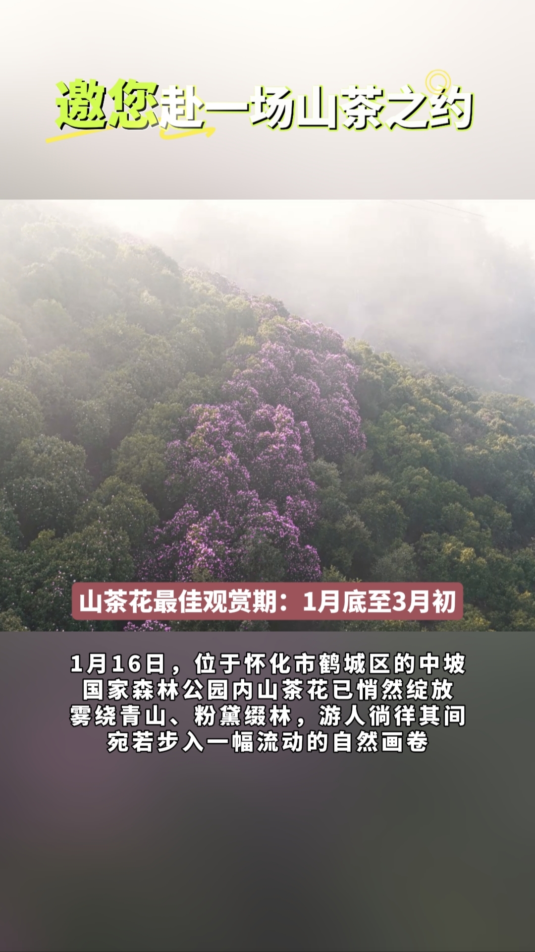 红网时刻新闻1月16日怀化讯(记者 雷文霞 通讯员 黄文韬 石媛媛)1月16日,位于怀化市鹤城区的中坡国家森林公园内,山茶花已悄然绽放。雾绕青山,粉黛缀林,游人徜徉其间,宛若步入一幅流动的自然画卷。