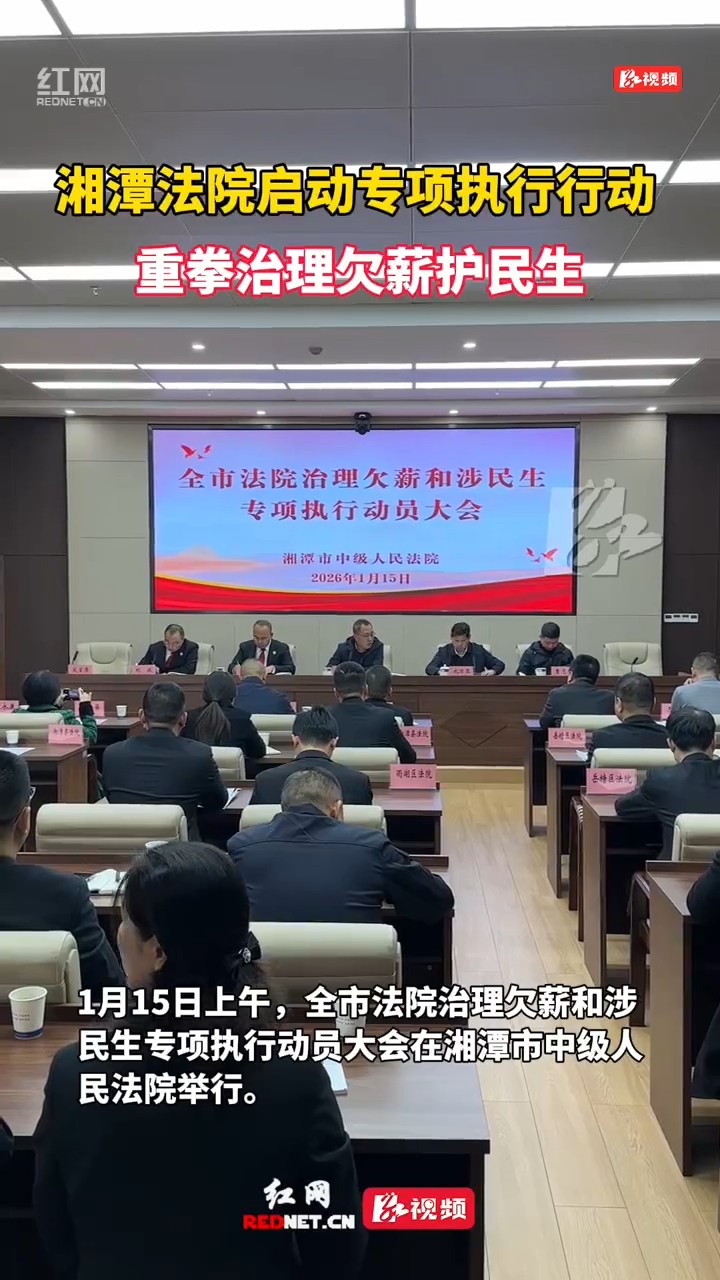 红网时刻新闻1月15日湘潭讯(记者 吴佳俊 通讯员 刘叶晗)1月15日上午,全市法院治理欠薪和涉民生专项执行动员大会在湘潭市中级人民法院举行。此次专项行动旨在深入贯彻落实中央关于保障民生、根治欠薪的决策部署,切实保障农民工等群体的合法权益,以强有力的司法执行回应民生关切。