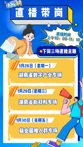湘就业视频号、红网PC端及时刻新闻客户端同步直播,点击预约,开播不错过!