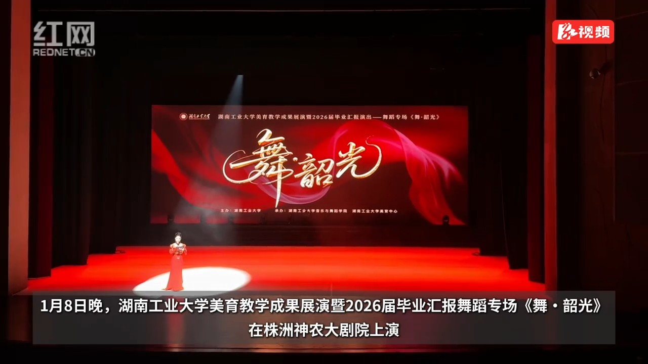 红网时刻新闻1月9日株洲讯(记者 苏莉雅 通讯员 欧阳池建 陈芹)1月8日晚,株洲市神农大剧院座无虚席,湖南工业大学美育教学成果展演暨2026届毕业汇报舞蹈专场《舞・韶光》在此震撼上演。
