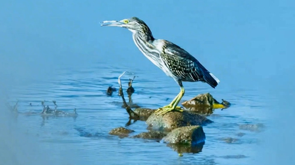 绿鹭,鹈形目鹭科绿鹭属鸟类。2025年7月5日上午,一只绿鹭在舜水河湿地公园觅食时,被鸟类摄影师偶然拍到。自此,蓝山境内已知栖息的鹭鸟种类,又增添了新的一员。绿鹭通常栖息于河流、湖泊、水库附近的林缘与灌木草丛中,尤其喜爱溪流纵横、水塘遍布且生长着柳树的河岸湿地环境。绿鹭的食物主要以鱼类为主,也捕食蛙、蟹、虾、水生昆虫和软体动物。