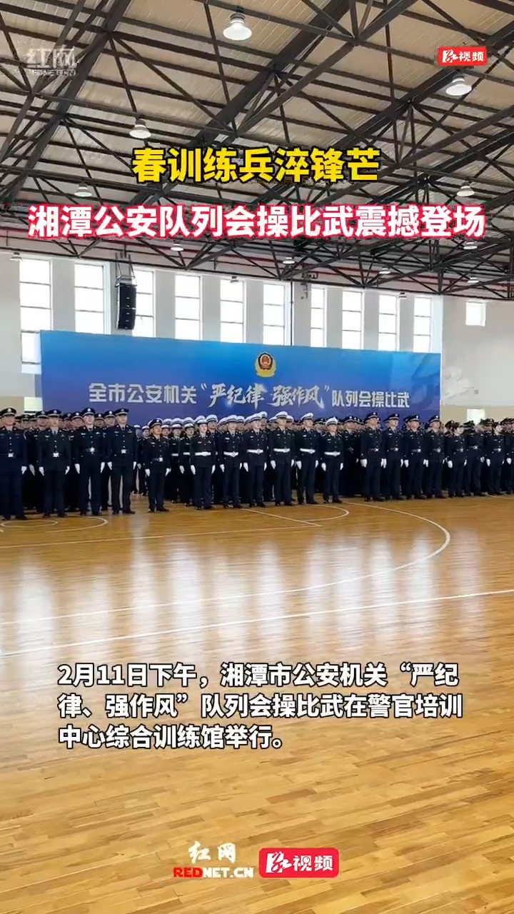 红网时刻新闻2月11日湘潭讯(记者 吴佳俊 通讯员 黄连香)为深入贯彻执行《公安机关人民警察内务条令》,进一步强化公安队伍纪律作风建设,锤炼过硬本领,锻造一支高素质的公安铁军,2月11日下午,湘潭市公安机关“严纪律、强作风”队列会操比武在警官培训中心综合训练馆举行。副市长、市公安局局长陈睿出席。