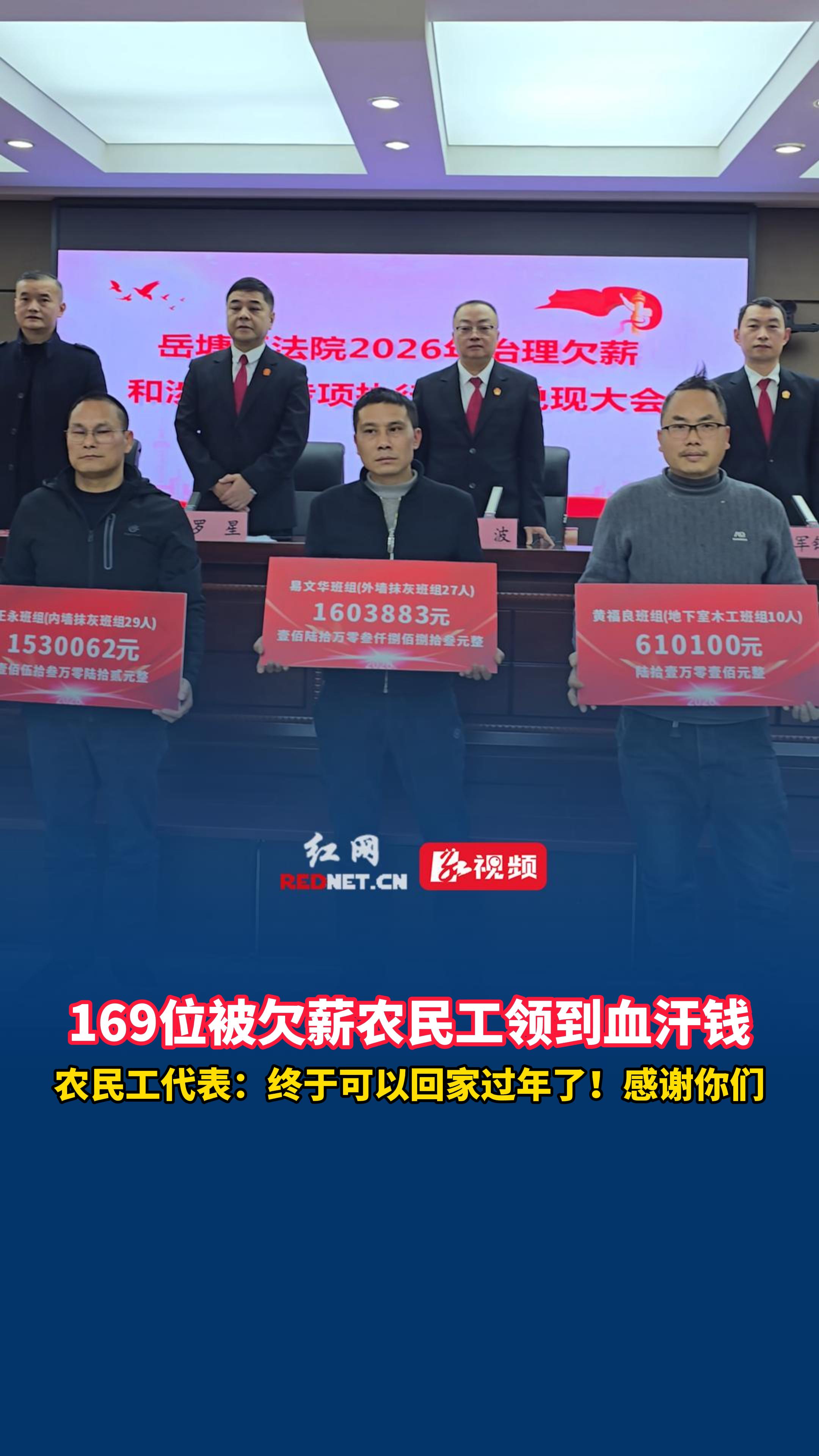 红网时刻新闻2月12日湘潭讯(记者 刘放明 通讯员 周迪)“终于可以回家过年了……感谢你们!”2月11日下午,湘潭市岳塘区人民法院召开治理欠薪和涉民生专项执行案款兑现大会,为169名农民工兄弟发放欠薪案款680余万元,在场农民工代表的感激之情溢于言表。