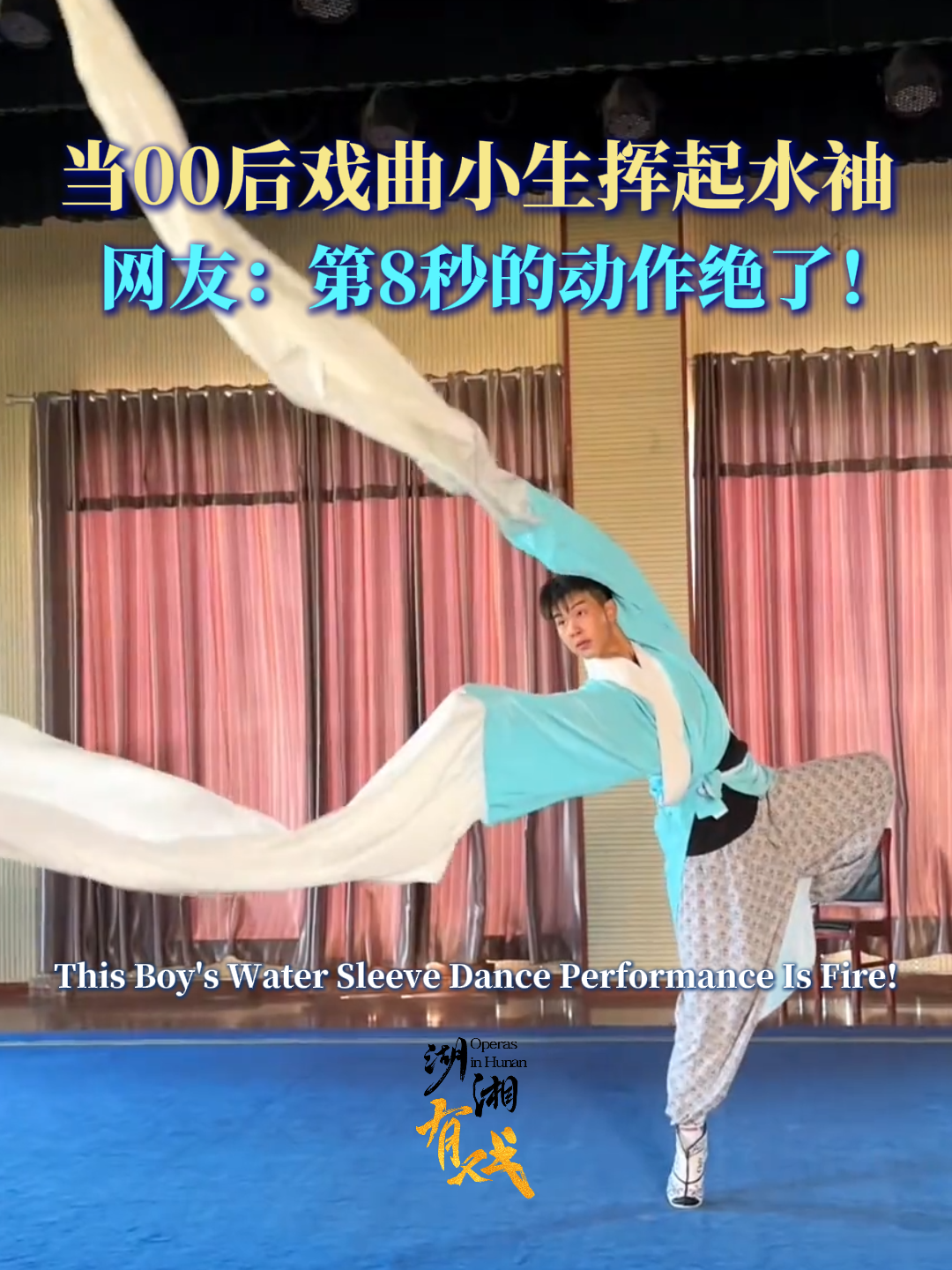 This Post-00s traditional Chinese opera performer, widely known as "xiaosheng", has infused water sleeve dance with a strikingly youthful energy. Every flick or lift of the water sleeve carries the young generation's deep passion and a sense of inheritance—neat yet powerful. As the water sleeves flutter and dance, they reveal not only years of rigorous and dedicated training but also the young generation's distinctive way of interpreting and expressing this ancient art. When the Post-00s opera performer meets the water sleeves, what comes into view is no longer just the preservation of tradition—rather, it's a bold, trendy and captivating stage charm.