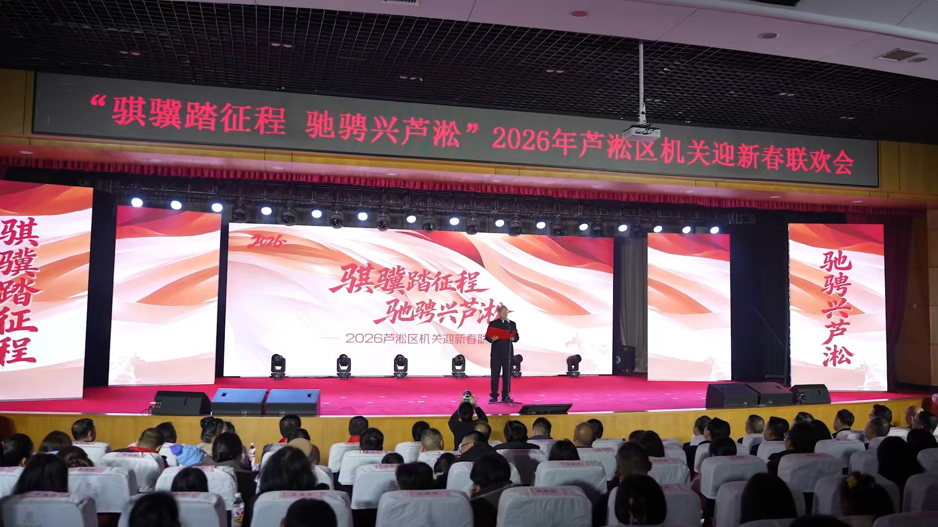 红网时刻新闻2月12日讯(通讯员 易轩)春潮涌动处,扬帆奋进时。2月10日晚,以“骐骥踏征程 驰骋兴芦淞”为主题的芦淞区2026年机关迎新春联欢晚会精彩上演。全区机关干部职工欢聚一堂,用歌舞、走秀、情景剧等丰富形式回顾奋斗过往、展望美好未来,展现芦淞干部队伍的昂扬风貌。