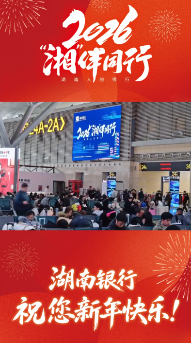 在长沙高铁南站,人们步履匆匆,或是归乡,或是远行。返乡旅客张女士抬头望向大屏,不禁感慨:“看到湖南银行,‘湘’伴同行几个字,心里一下就暖了。在外打拼一整年,刚下高铁就看到家乡银行的祝福,就像老朋友在等我回来过年。”
