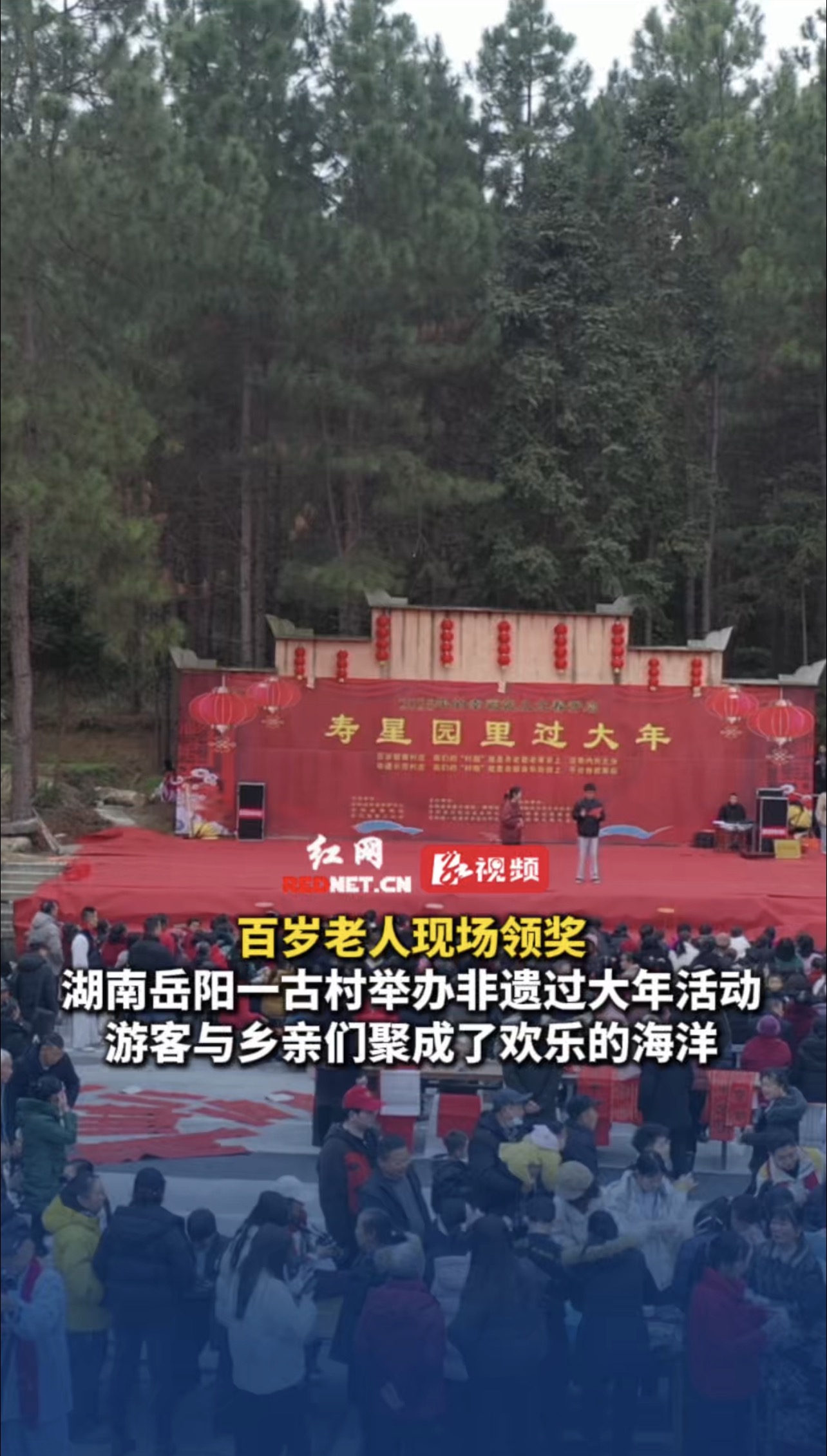 红网时刻新闻2月5日岳阳讯(记者 韩佳根 通讯员 郭子豪 陈诗源 实习生 晁一鸣)2月4日,岳阳市岳阳县公田镇大塅村寿星园内锣鼓喧天、人声鼎沸,一场以“非遗贺新春,我的家乡年味浓”为主题的文化活动在此拉开序幕,游客与乡亲们聚成了欢乐的海洋。