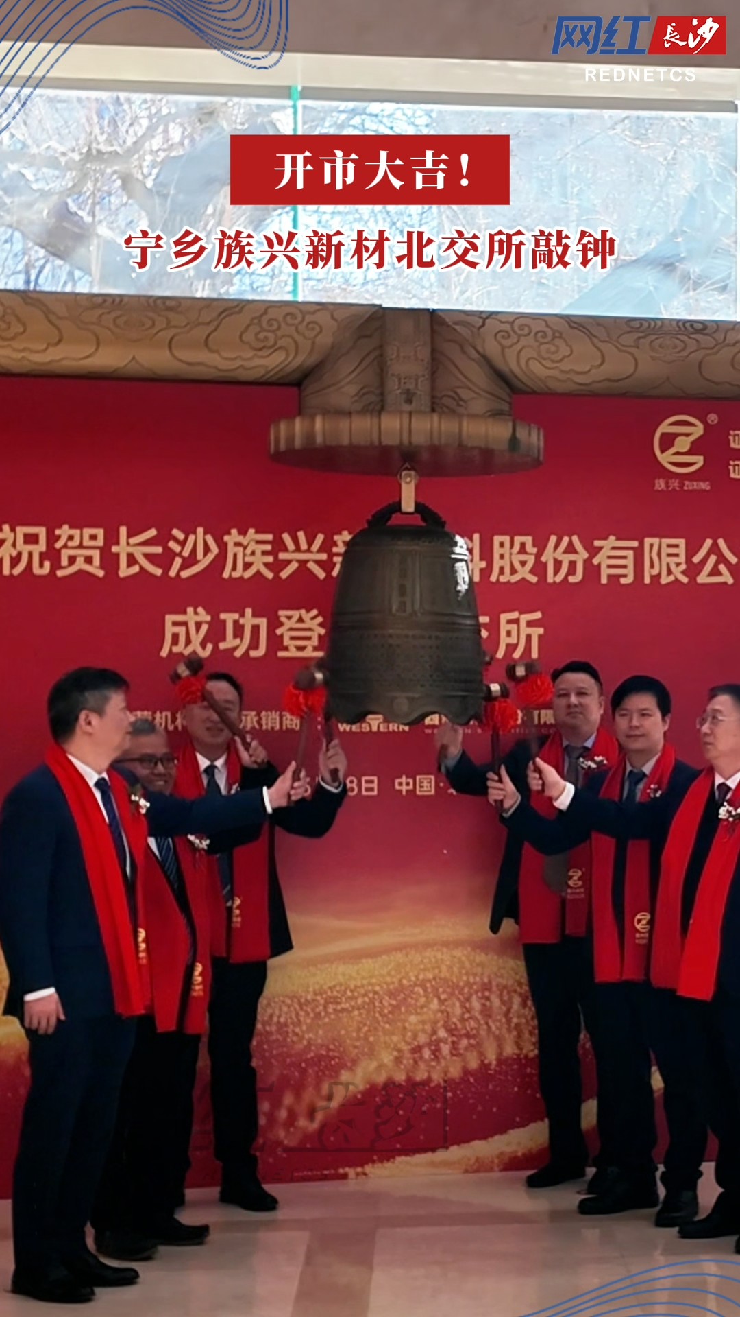 红网时刻新闻3月18日讯(记者 余雅琴 夏钰媛)3月18日上午,北京证券交易所交易大厅。随着一记清脆的钟声,长沙族兴新材料股份有限公司(股票代码:920078)正式登陆A股市场。大屏幕上,族兴新材的股价数字开始跳动,开市大吉!