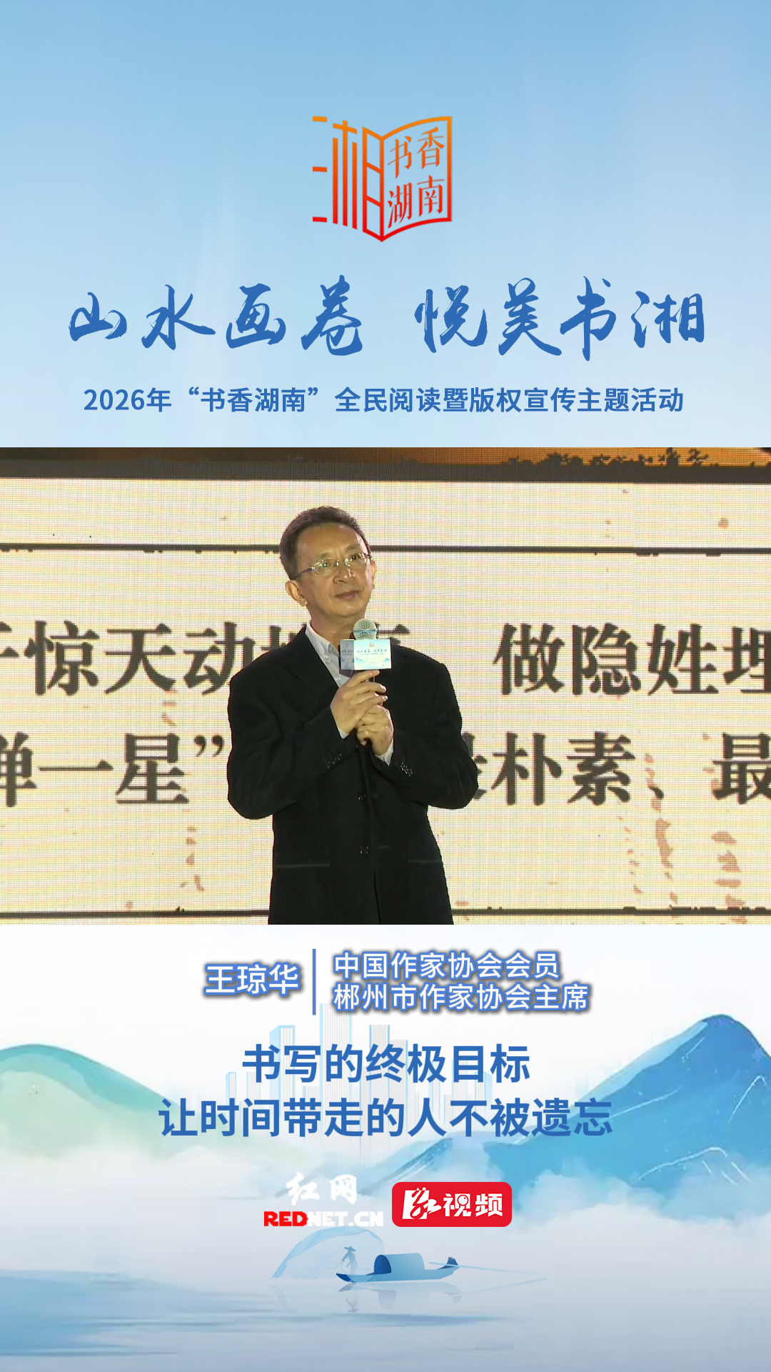 红网时刻新闻记者 任晔 向玮 龚晗 郴州报道4月15日,2026年“书香湖南”全民阅读暨版权宣传主题活动在郴州711时光小镇举行。作为用文字记录下711矿这段鲜为人知的历史的作家,中国作家协会会员、郴州市作家协会主席王琼华讲述了自己创作《籍贯711》的故事,他说:书写,不是为着留住人,而是为了让被时间带走的人,不被我们遗忘。他们用一辈子铸造了“干惊天动地事,做隐姓埋名人”的伟大品格,也为“两弹一星”精神写下了最朴素、也最见灵魂的注脚。