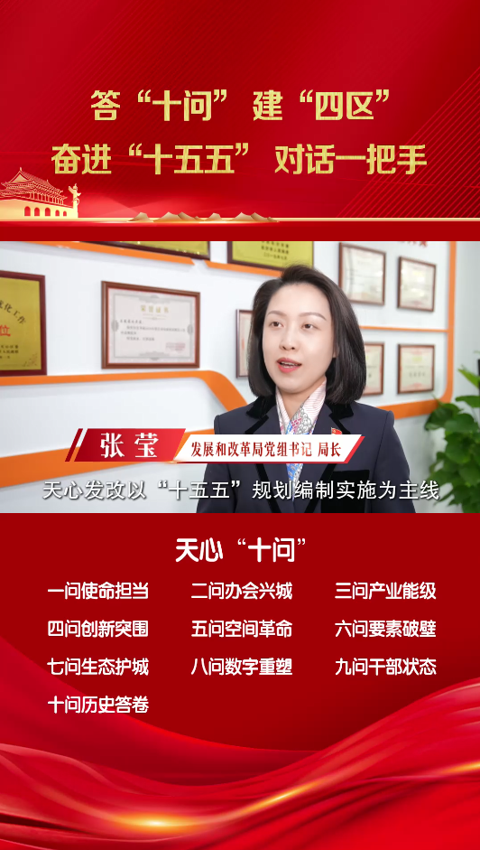 张莹:天心发改以“十五五”规划编制实施为主线,从三个维度回答好天心“十问”这份时代答卷,对照“十问”指向,我们深感压力与责任重大,机遇与挑战并存。聚焦“产业能级比拼差距、创新突围够不够强、营商环境够不够优”等问题,我们深刻反思、认真研究,着力将“真问题真思考”转化为“真举措真实效”。