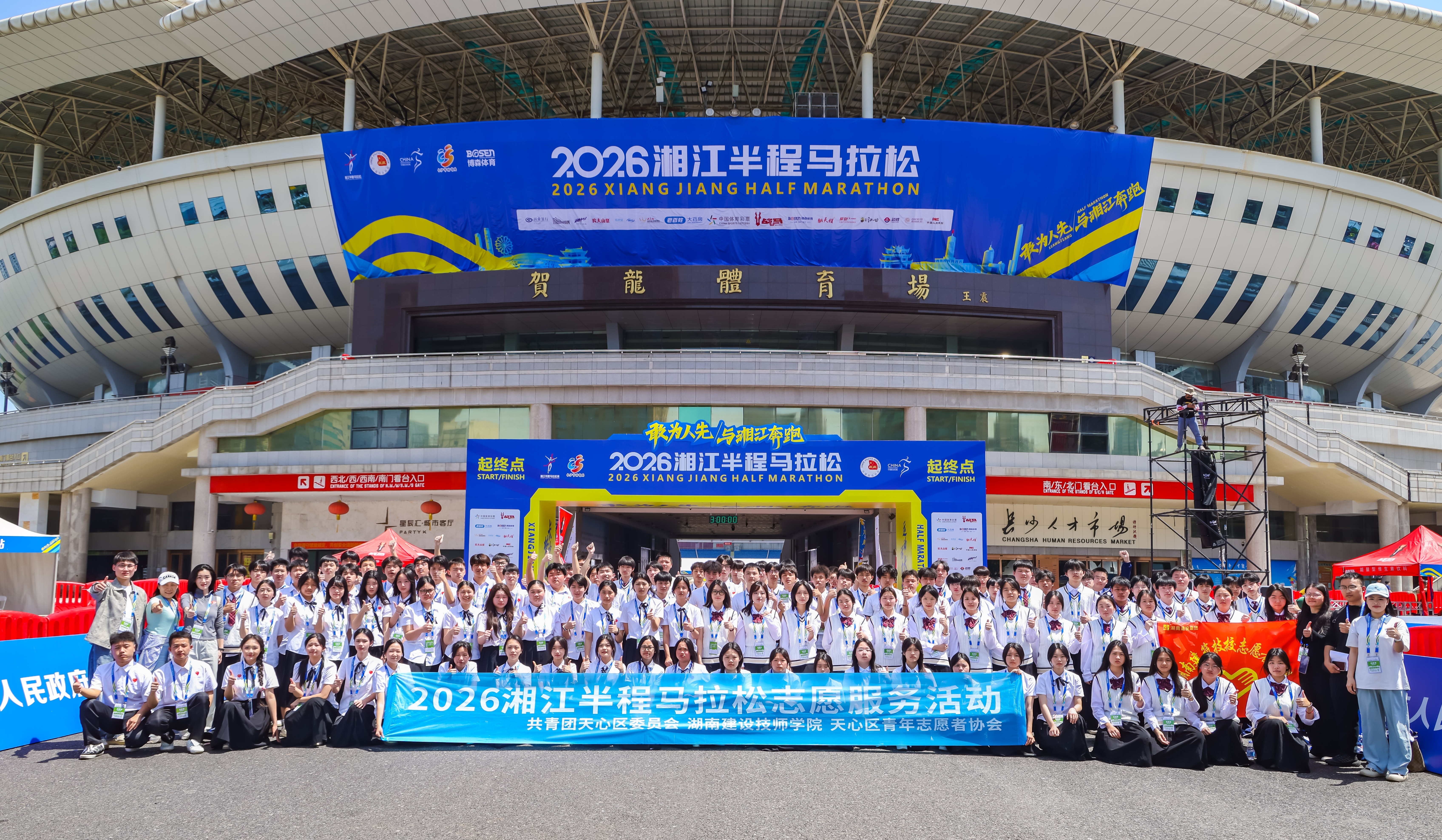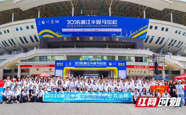 红网时刻新闻4月26日讯(通讯员 李木子)春风拂湘江,热血燃赛道。4月26日,2026湘江半程马拉松赛在湘江之畔鸣枪开跑,来自长沙市天心区辖区湖南建设技师学院的120名学生志愿者身着统一服装,在沿途三处重要赛点位置呐喊助威护航赛事,成为赛道上一道亮眼的青春风景线。