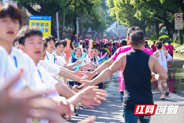 除了加油助威,志愿者们更是高效可靠的“全能帮手”:主动做好赛道指引、秩序劝导、环境保洁等工作,同时时刻关注选手身体状态,帮扶有需要的参赛人员。“这些志愿者太棒了,青春昂扬,充满了精气神!”一名首次参加湘江半马的选手在赛后感慨,看到这些年轻的面孔,跑起来更有劲了。