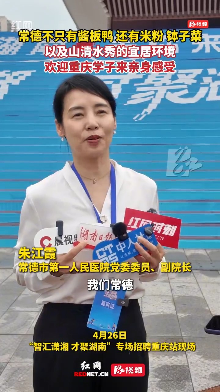 “常德不仅有酱板鸭,还有米粉、钵子菜和山清水秀的宜居环境,欢迎大家来常德亲自感受。” 4月26日,在“智汇潇湘 才聚湖南”重庆站专场招聘活动的现场。常德市第一人民医院满怀诚意而来,期待与优秀学子双向奔赴。