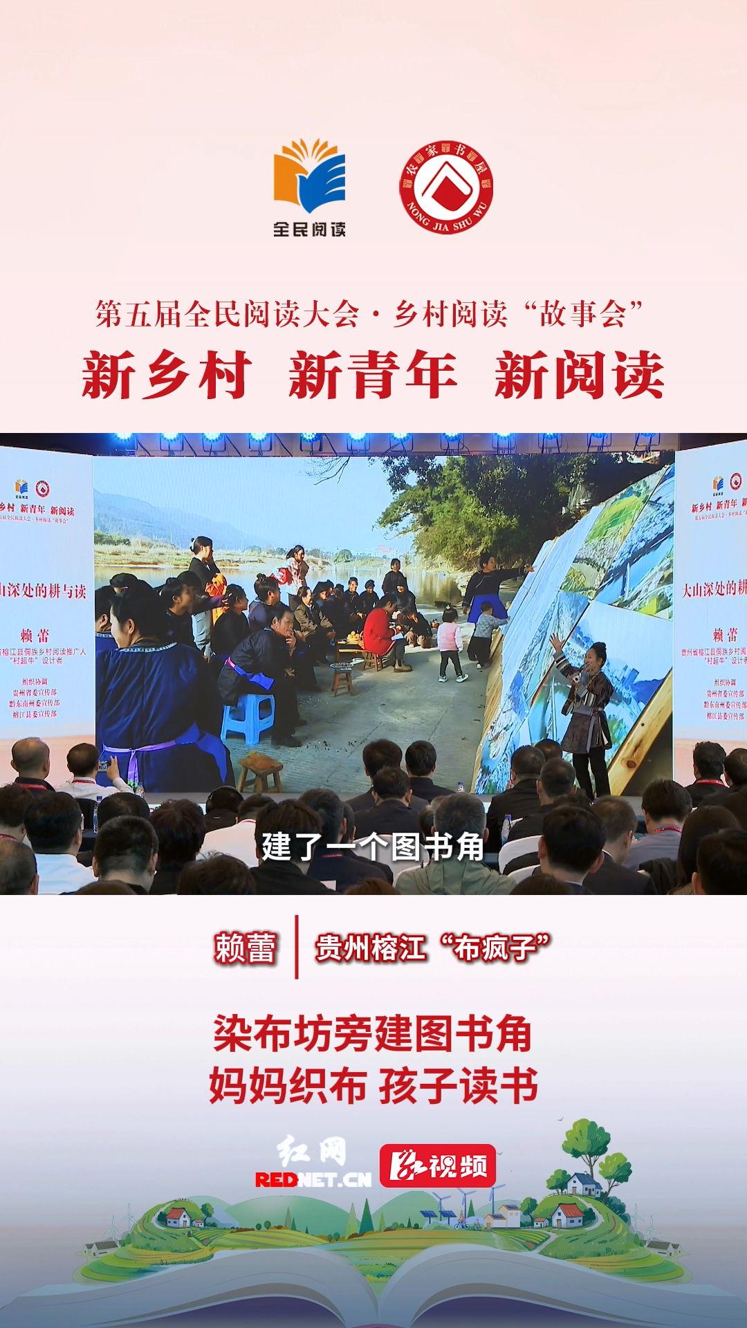 4月20日下午,第五届全民阅读大会·乡村阅读“故事会”在江西南昌启幕。这场以“新乡村 新青年 新阅读”为主题的活动,通过一个个沾泥土、带露珠的真实故事,勾勒出新时代乡村阅读的生动画卷。赖蕾,大家也常叫她“布疯子”,来自“村超” 发源地贵州榕江,是土生土长的侗族手工艺人。她在染布坊旁建的图书角,虽没有华丽的装饰,却是寨里最动人的风景。