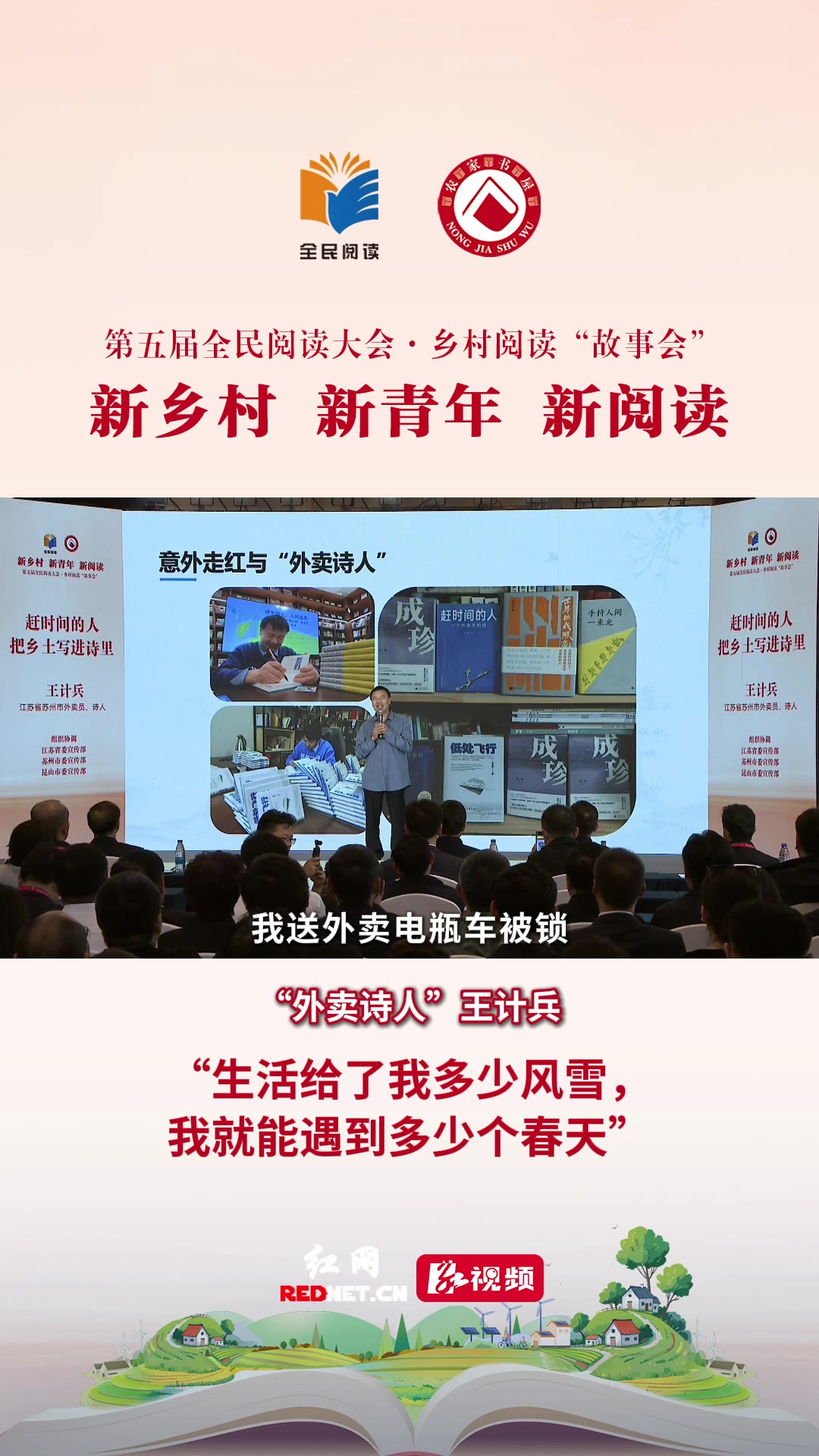 4月20日下午,第五届全民阅读大会·乡村阅读“故事会”在江西南昌启幕。这场以“新乡村 新青年 新阅读”为主题的活动,通过一个个沾泥土、带露珠的真实故事,勾勒出新时代乡村阅读的生动画卷。一天晚上,“外卖诗人”王计兵在送外卖时电瓶车被锁,导致七张外卖订单全部超时。那天晚上,他写下《春天》,写下“生活给了我多少风雪,我就能遇到多少个春天”。也正是这两句诗,让王计兵登上了2025年央视春晚,文学不仅影响着他,也开始影响更多的人。