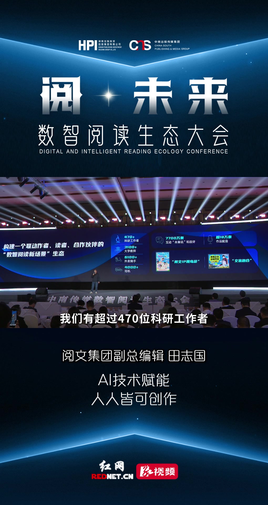 4月22日,作为首个“全民阅读活动周”的湖南行动之一,中南传媒数智阅读生态大会在湖南长沙普瑞酒店举行,此次大会以“阅·未来”为主题,由湖南出版集团、中南传媒主办。大会旨在汇聚数智阅读领域的顶尖资源,围绕内容生产、技术赋能、IP孵化、渠道分发、用户触达等关键环节展开深度对话与资源对接,致力推动行业从“单点合作”迈向“系统共融”,构建开放、协同、共赢的数智阅读产业新生态。