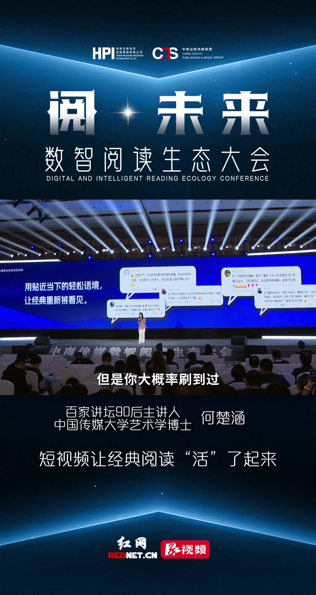 大会上,百家讲坛90后主讲人、中国传媒大学艺术学博士何楚涵,以《短视频让经典阅读“活”起来》为主题进行分享。她说,你可能没完整读过《红楼梦》,但你大概率刷到过解读“林黛玉第一次进贾府,其实是大型‘社交审视现场’”的短视频。你可能懒得读《世说新语》,但如果一条视频告诉你:一千多年前的老祖宗,把他们的日常八卦、段子、热搜全部记在这本小册子里,你会不会瞬间就想翻开它,好好读一读?短视频从来没有替代阅读,它只是让“开始阅读”这件事,变得更轻一点。