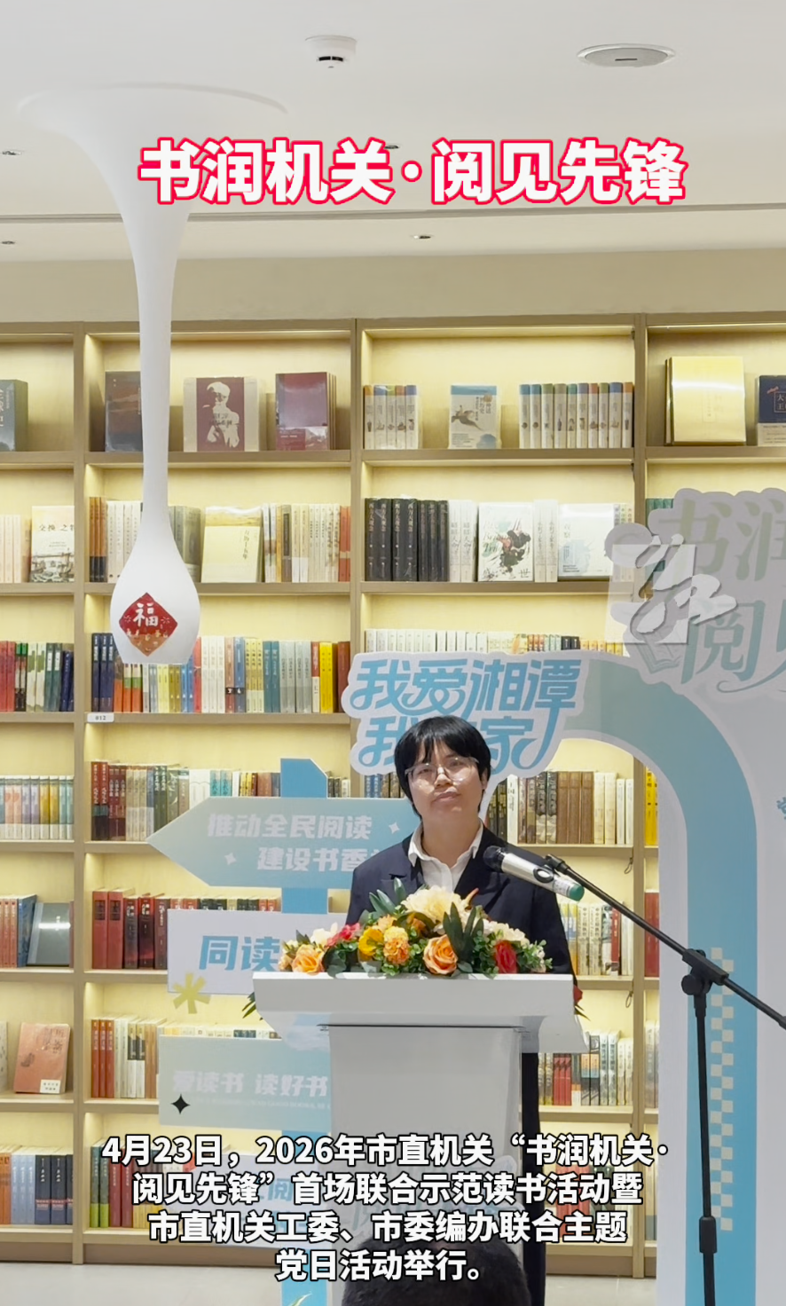 红网时刻新闻4月23日湘潭讯(记者 刘放明 实习生 言雨桐)4月23日是世界读书日。当天,湘潭观湘门乐之书店内的读书氛围格外浓厚,2026年市直机关“书润机关·阅见先锋”首场联合示范读书活动暨市直机关工委、市委编办联合主题党日在这里举行。