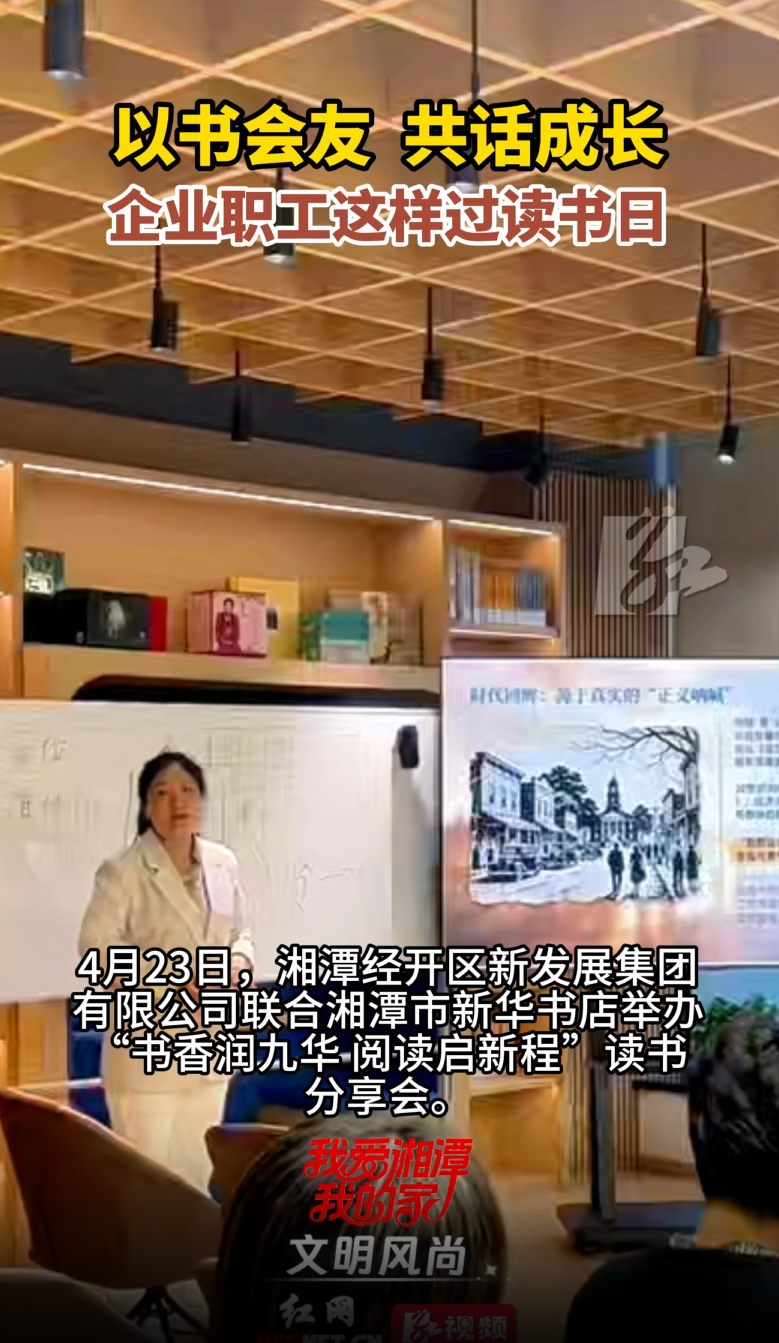 红网时刻新闻4月23日湘潭讯(记者 楚湟 通讯员 肖艳 赵雀屏)今年4月23日是第31个世界读书日。当天,湘潭经开区新发展集团有限公司联合湘潭市新华书店举办“书香润九华 阅读启新程”读书分享会。来自利欧泵业、龙牌食品等企业的读书爱好者齐聚一堂,以书会友、交流心得,营造出浓厚的书香氛围。