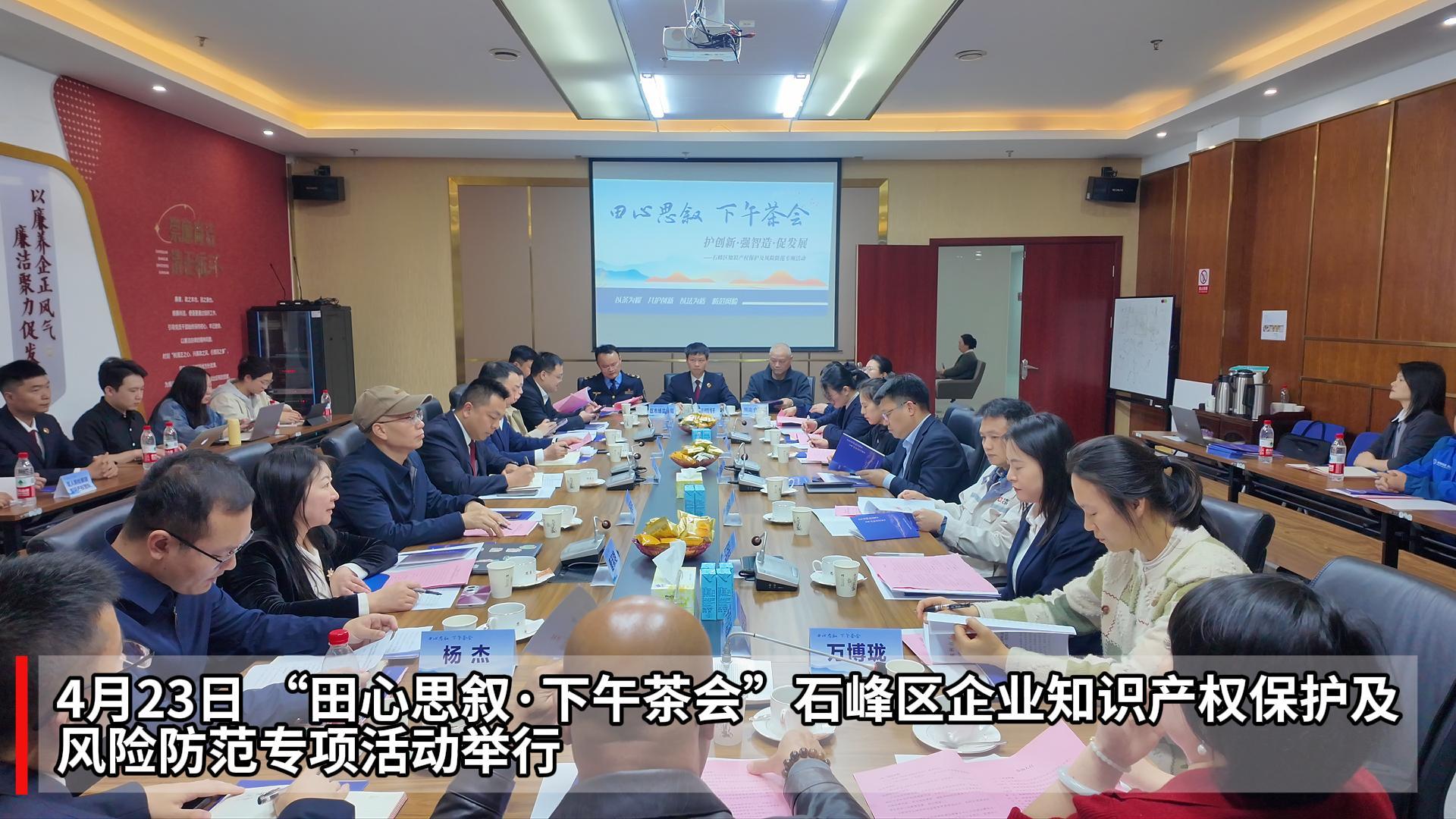4月23日下午,一场不设主席台、不念发言稿的“田心思叙・下午茶会”在石峰区轨道智谷科研楼举行。石峰区人民检察院联合田心片区管理办、区市场监督管理局、区优化营商环境协调事务中心,以茶为媒、以法为盾,直面辖区企业知识产权保护痛点难题,用“软服务”筑牢产业创新的“硬支撑”。