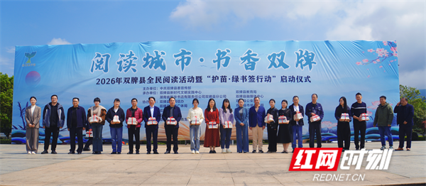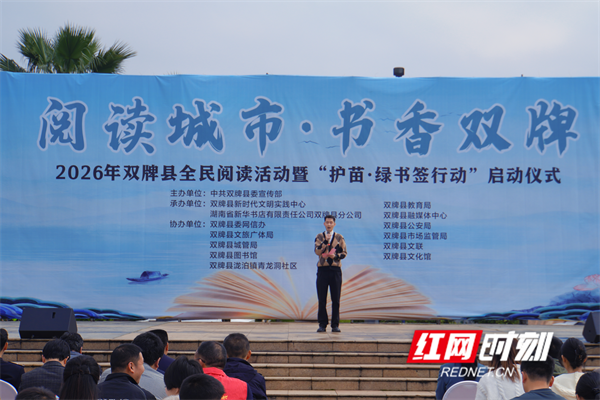 红网时刻新闻4月24日讯(通讯员 廖宇晨)4月23日,值第31个“世界读书日”之际,2026年双牌县全民阅读活动暨“护苗・绿书签行动”启动仪式在双牌滨江广场举行。双牌县委常委、宣传部部长石婧出席活动并致辞、宣布启动,县委宣传部、县教育局、县新华书店等单位负责人及师生、家长代表约200人共同参与,共启书香双牌建设新征程。