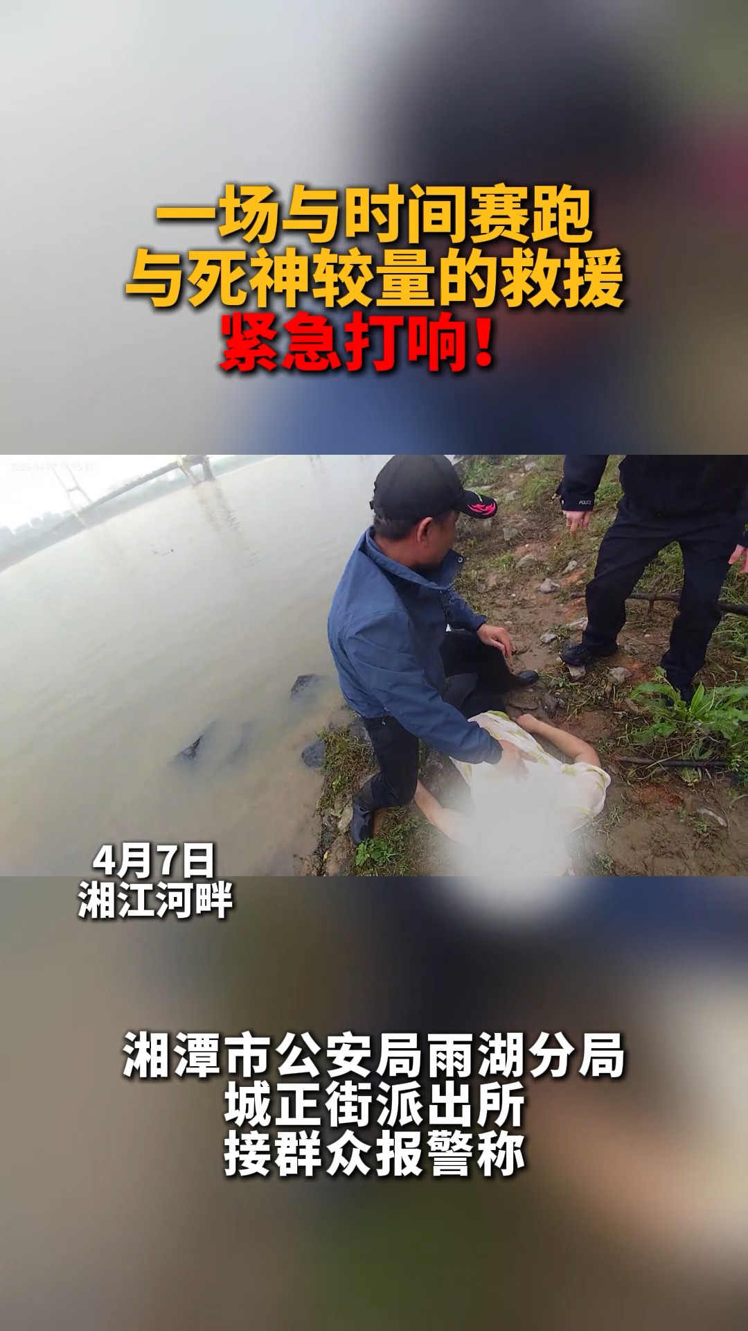 “警察同志,有人往湘江里走了,快来救人!”4月7日上午,湘潭市公安局雨湖分局城正街派出所接到群众报警称,一名女子正向湘江水域走去,情况万分紧急,一场与死神赛跑的生命救援在湘江河畔紧急展开。