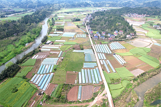 春光正好,高竹坪的田垄间,一排排大棚整齐列队,犹如大地上的绿色琴键。微风过处,苗叶轻摇,唱出一支充满希望的丰收曲。