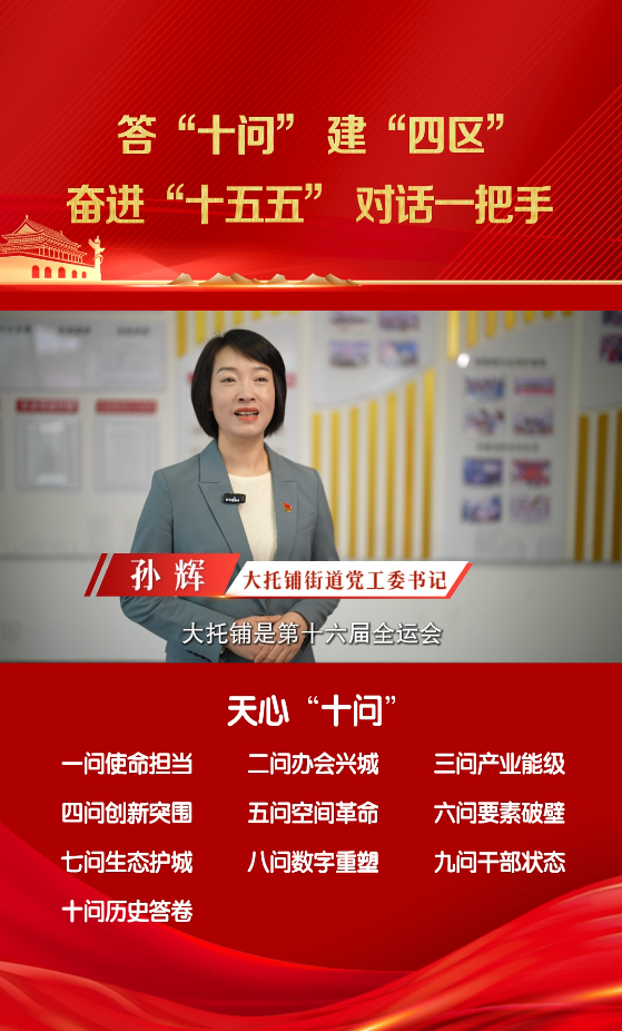 前言:在“十五五”开局起步和天心“三十而立”再出发的历史交汇点,全区高质量发展大会深刻提出天心“十问”,直指天心发展痛点、寄托群众期盼,成为推动天心区高质量发展的“思想罗盘”和“行动号角”。天心区融媒体中心联合红网长沙站推出《答“十问” 建“四区” 奋进“十五五” 对话一把手》系列访谈,本期专访大托铺街道党工委书记孙辉。