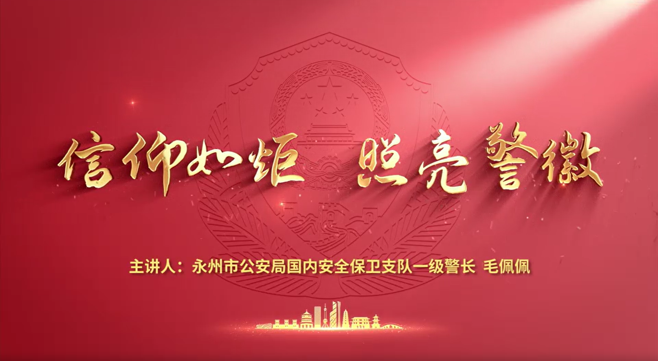 编者按:为深入学习贯彻习近平总书记关于青年工作的重要论述,继承和发扬五四精神,树立为祖国为人民永久奋斗、赤诚奉献的坚定理想,锻造忠诚干净担当的过硬公安青年铁军,近期,永州市公安局组织开展全市公安机关“青春践初心 热血护潇湘”微党课宣讲活动,激励引导全市广大青年民辅警踔厉奋发、勇毅前行,奋力书写为公安工作现代化挺膺担当的青春篇章。本期为您展播的微党课作品是《信仰如炬 照亮警徽》,主讲人:永州市公安局国内安全保卫支队一级警长毛佩佩。