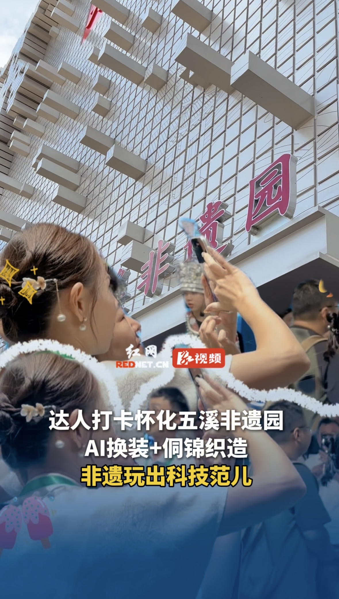 亚玲说:“这里不仅设计精巧,非常适合打卡出片,还设立了很多的AI服务项目。”她推荐道,“在这里,你可以体验到‘中国的奢侈品’——侗锦织造,可以感受到AI民族服饰换装的魅力。当然,这里也非常适合家长带领小朋友来到这里体验划龙舟、模拟射击。我觉得,五溪非遗园非常适合游客来到怀化打卡。”
