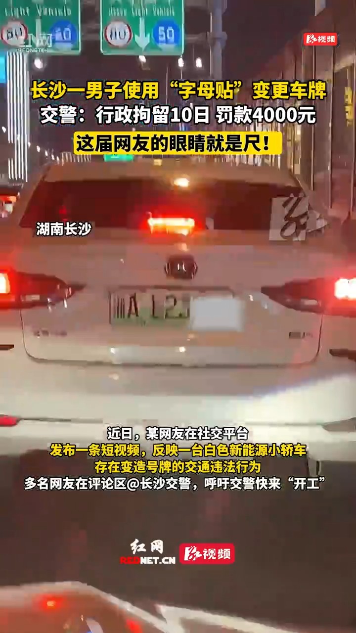 近日,某网友在社交平台发布一条短视频,反映一台白色新能源小轿车存在变造号牌的交通违法行为。多名网友在评论区@长沙交警,呼吁交警快来“开工”。
