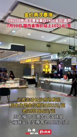 红网时刻新闻7月22日讯(记者 吴芳 郭雅倩 实习生 刘琴)7月21日晚,国际金价再次暴涨,重返3400美元/盎司上方。
