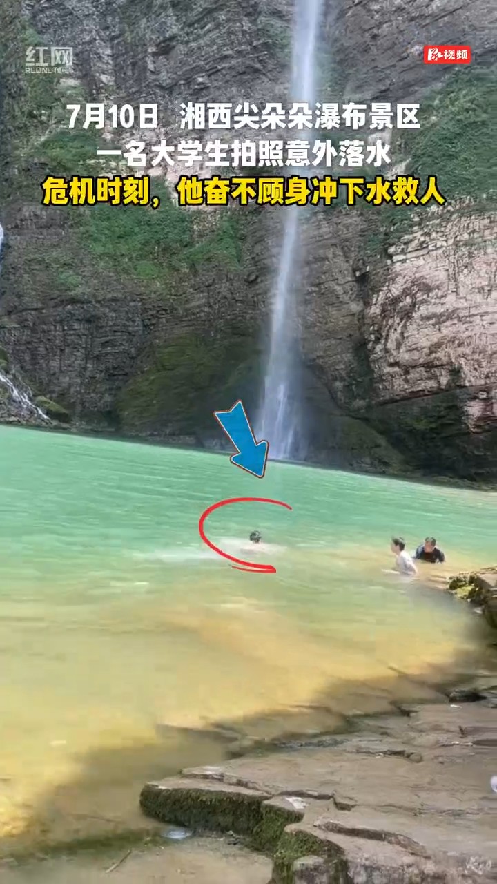 时间回到7月10日,湘西花垣县尖朵朵瀑布的轰鸣水声里,突然响起一阵呼救——“救命啊!”刘俊循声望去,只见幽碧水潭中,一个身影正在挣扎,眼看就要被水面吞没。