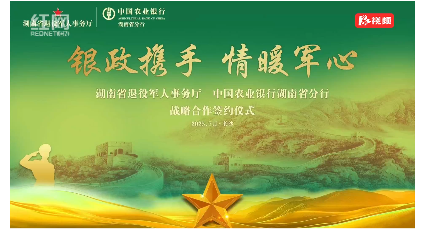 红网时刻新闻7月31日讯(记者 郭雅倩 白杨)7月31日,湖南省退役军人事务厅与中国农业银行湖南省分行(以下简称“农行湖南分行”)在长沙正式签署全面战略合作协议。