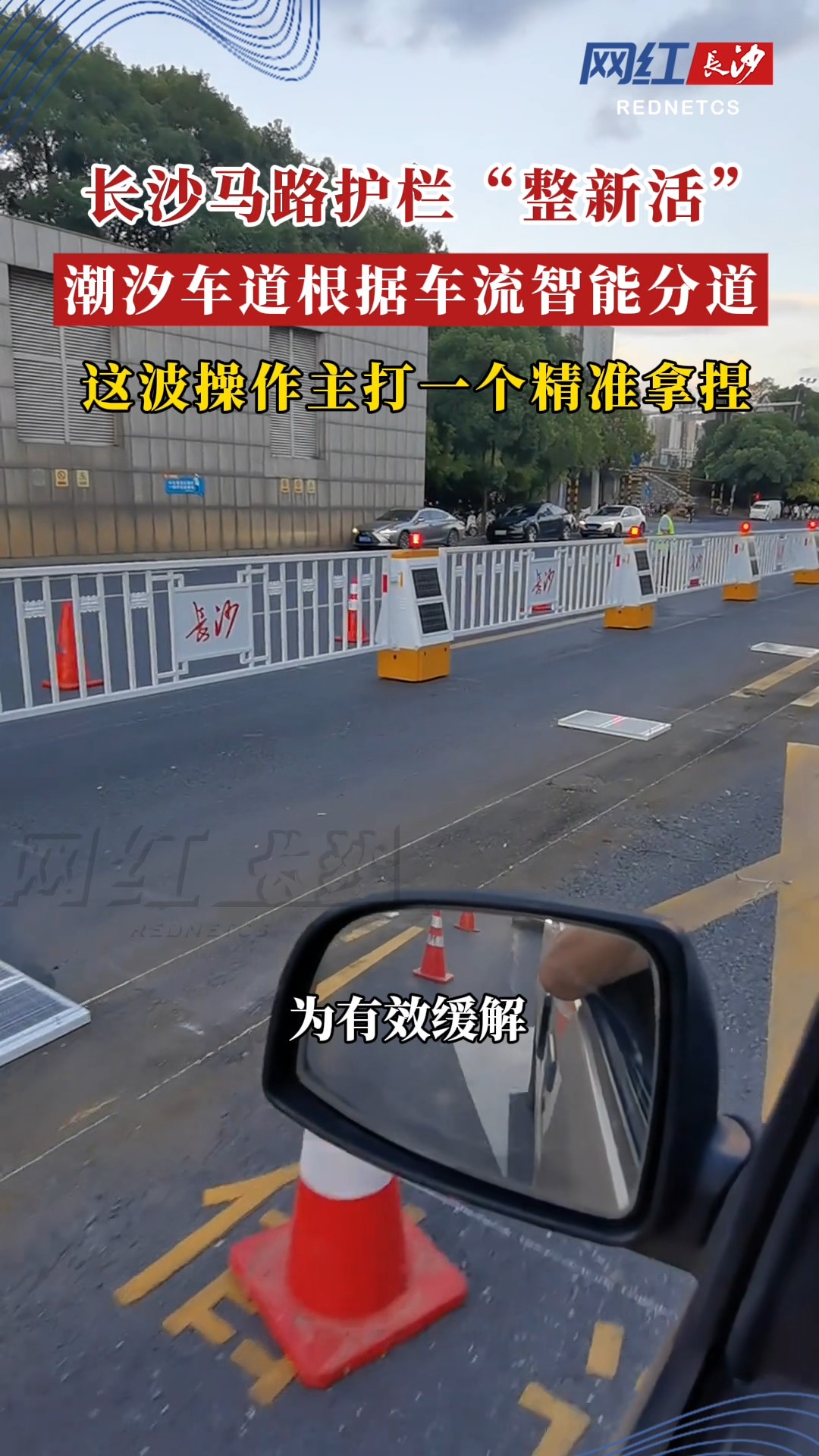 红网时刻新闻8月26日讯(记者 彭超 见习记者 夏钰媛)长沙街头近日出现自动平移式护栏。据了解,此为潮汐车道设备,通过人工控制,根据实时车流量灵活调整车道分配,有效提升道路通行效率,真是缓解拥堵的“黑科技”!