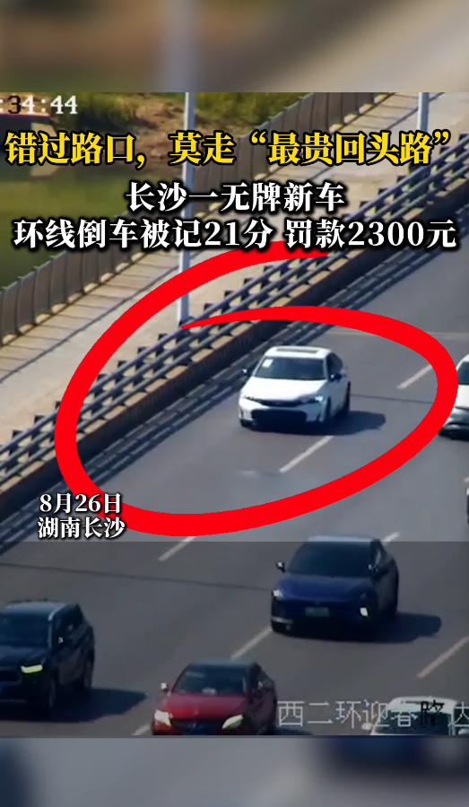 8月26日10时左右,长沙市公安局交通管理支队特勤大队三中队民警通过视频巡查发现,西二环龙王港大桥南往北方向有一辆白色无牌本田轿车正在倒车,后方车辆纷纷避让,存在极大的安全隐患。