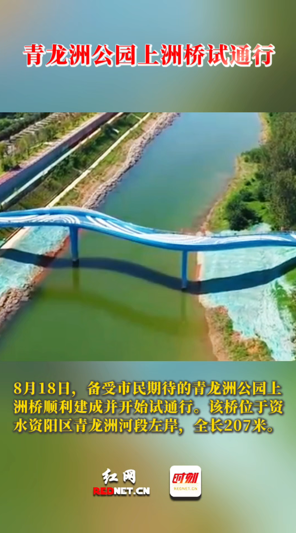 青龙洲公园上洲桥。8月18日,备受市民期待的青龙洲公园上洲桥顺利建成并开始试通行。该桥位于资水资阳区青龙洲河段左岸,全长207米。青龙洲公园作为资江风貌带的标志性核心景点,成为以自然生态为核心的休闲胜地。青龙洲公园上洲桥的建成试通行,不仅改善了市民前往青龙洲公园的通行条件,还可维护资江流域行洪安全。消息来源:资阳区融媒体中心