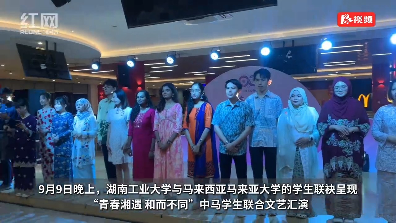 红网时刻新闻9月11日株洲讯(记者 苏莉雅 实习生 陈涵 通讯员 徐杰)9月9日晚上,在湖南工业大学南苑食堂一楼,灯火通明、掌声雷动,一场以“青春湘遇 和而不同”为主题的中马学生联合文艺汇演在这里举行。