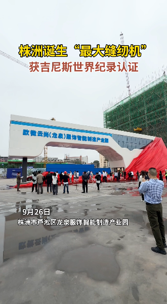 红网时刻新闻9月26日株洲讯(记者 苏莉雅 通讯员 罗金鹏)9月26日上午,在株洲市芦淞区龙泉(服饰)智能制造产业园,“最大的缝纫机造型建筑”正式揭开了神秘面纱,一项全新的吉尼斯世界纪录诞生。
