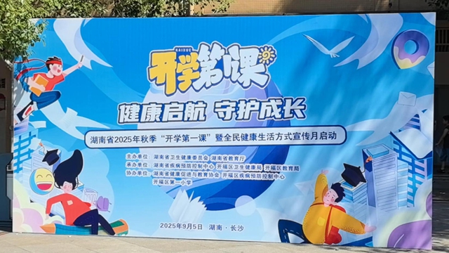 红网时刻新闻9月5日讯(记者 戴丹 通讯员 李希宬 张亚娜)9月5日上午,湖南省2025年秋季“开学第一课”暨全民健康生活方式宣传月启动活动在长沙市开福区第一小学举行。活动围绕“健康启航 守护成长”主题,以“线下主场+线上直播”形式开展,300余名师生代表现场参与,全省中小学生通过省教育厅公众号、省疾控中心视频号、新湖南融媒体等多个平台同步观看。