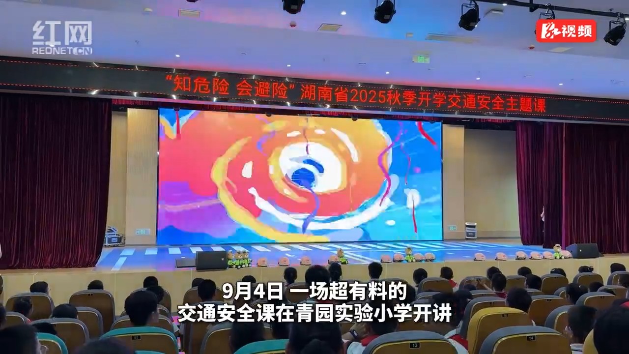 9月4日下午,“知危险 会避险”2025年秋季开学交通安全主题课在长沙市天心区青园实验小学开讲。