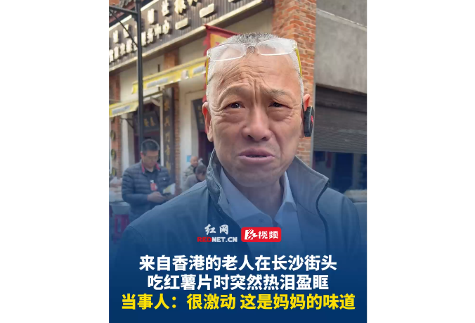 来自香港的老人在长沙街头吃红薯片时突然热泪盈眶