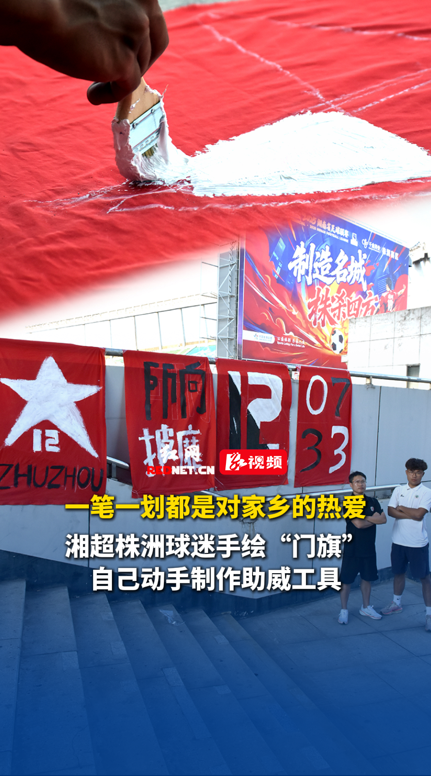 “门旗是看台文化中一种常见的助威工具,因需双手抓住两侧旗杆将其举起,形似汉字‘门’字而得名。”株洲“0733BASE”球迷会现场负责人罗云异告诉记者,虽然大家并非美术设计专业出身,成品与设计方案存在差距,但对足球的信仰和对家乡的忠诚,使他们克服了绘图能力上的不足,成功完成了当天的计划。