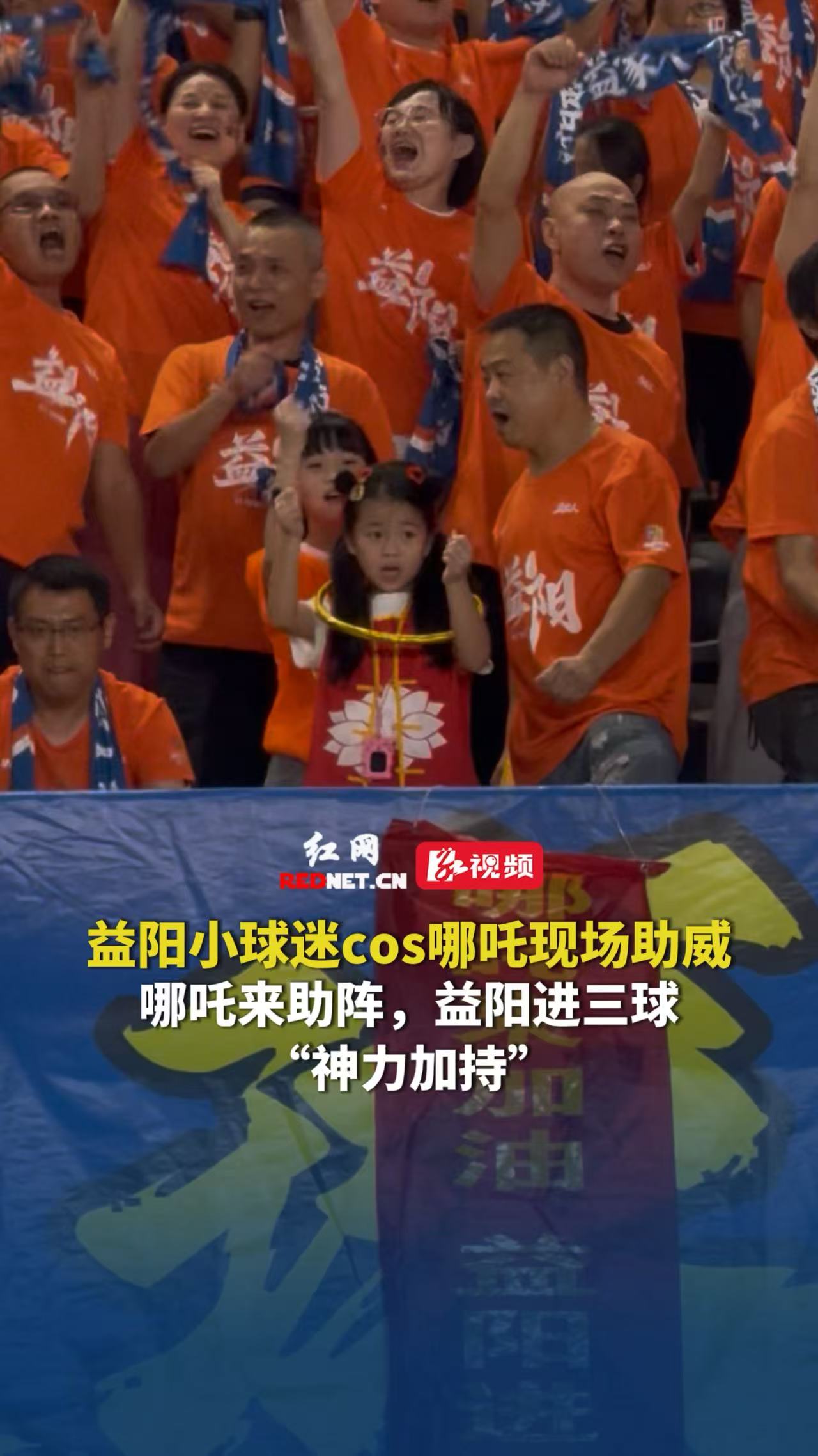 红网时刻新闻10月12日益阳讯(记者 赵佳妮 实习生 张志成)10月11日,益阳队在主场迎战湘潭队。看台上,一位小球迷身着哪吒服装,还拉起了“哪吒来助阵,益阳进三球”的横幅为球队助威,气势十足。最终,益阳队不负众望,以2:1险胜对手,现场气氛嗨到顶点!