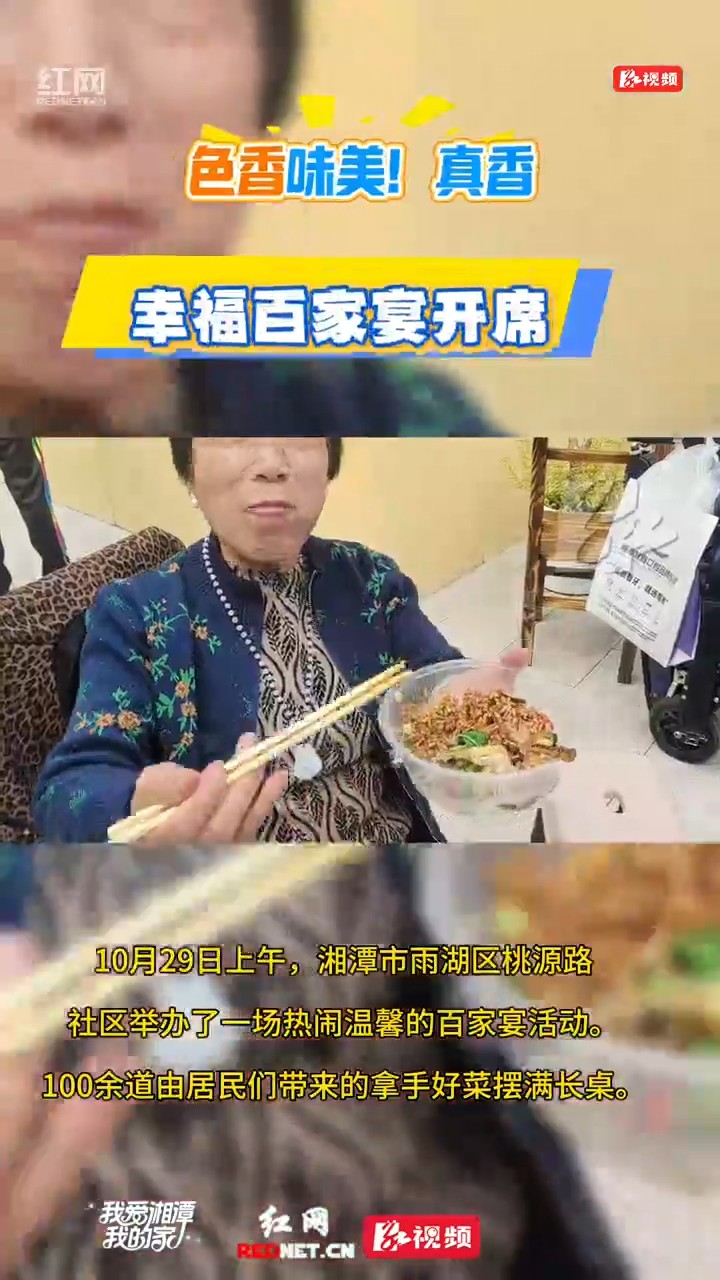 红网时刻新闻10月30日湘潭讯(记者 凌雨晴 通讯员 张莉)岁岁重阳,今又重阳。10月29日上午,湘潭市雨湖区桃源路社区联合湘潭仁与社会工作服务中心及驻社区单位、爱心机构,以“我爱湘潭我的家·重阳百家宴,幸福邻里情”为主题,举办了一场热闹温馨的百家宴活动,传递浓浓的关怀与邻里温情。
