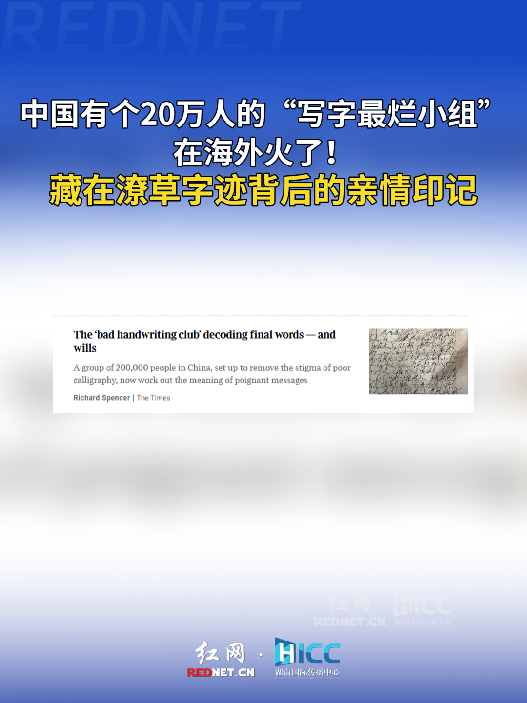 近日,中国社交网站豆瓣上有个20万人的“史上写字最烂小组”,在海外火了。因为在该小组里,网友不分享好看的字迹,而是看不懂的“胡写乱画”。10月24日,英国泰晤士报报道称:“最引人注意的是,该讨论小组发的图片,大多是因亲人们想要读懂临终之际老年人的笔迹而火爆。”潦草的字迹里,是中国人最深的牵挂,这些难以识别的模糊符号,成了藏在时光里最深的亲情印记。